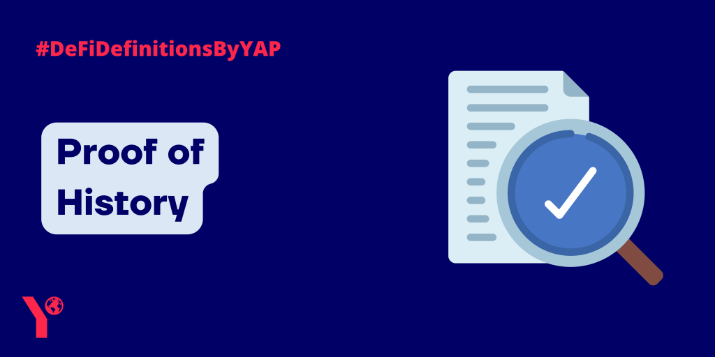 Proof of History (PoH) is a consensus mechanism most notably deployed by Solana, and is an evolution of the Proof of Stake model. As PoH employs Verifiable Delay Functions (VDFs) it is able to incorporate time itself into the blockchain, as a VDF can only be solved by performing a certain set of consecutive steps by a single CPU core.