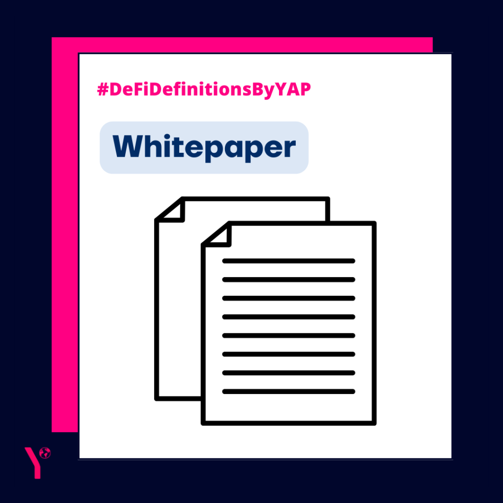 Designed as a publicly accessible document, a whitepaper is an informational thesis report published by projects or companies laying out their technical and economic details. As a sign of goodwill and transparency, protocols produce whitepapers where they break down their product’s inner workings, mission and vision for the future.